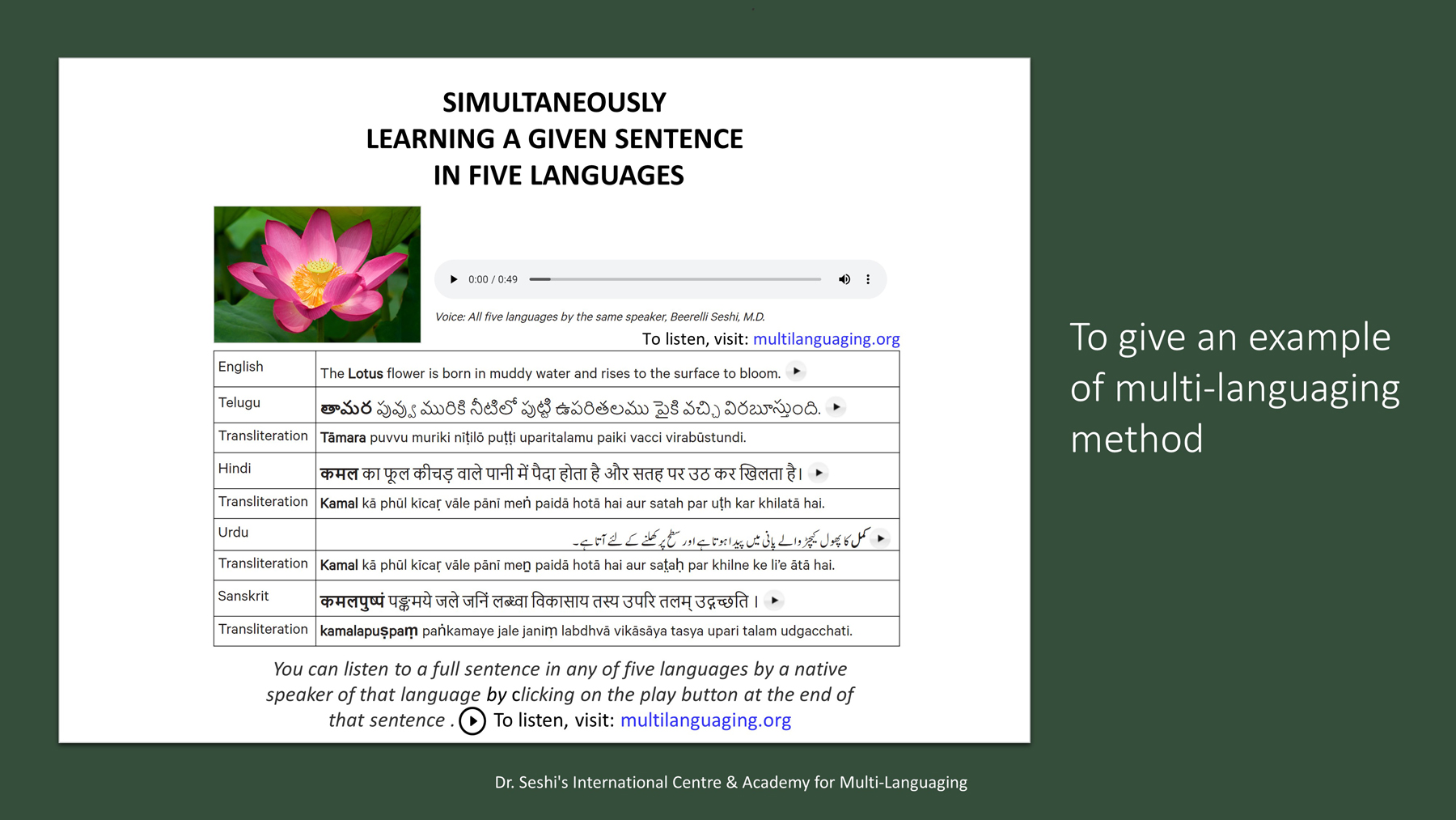 Dr. Seshi’s International Centre for Multi ∞ Languaging